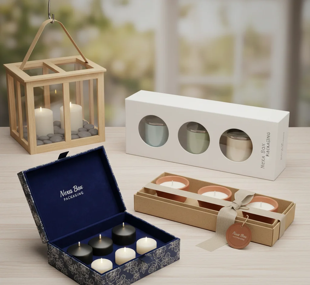 Yes! Nexa Box Packaging can cut PVC or PET windows in any shape, letting customers see candle colors and labels at a glance. Adding a window typically adds 1–2 days to production.